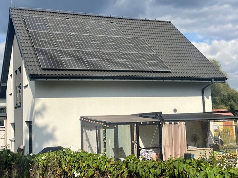 Kompleksowa realizacja w Łaziskach – instalacja PV 8,19 kW z balastowym montażem na dachu płaskim oraz system magazynowania energii Sofar Solar o pojemności 15 kWh.