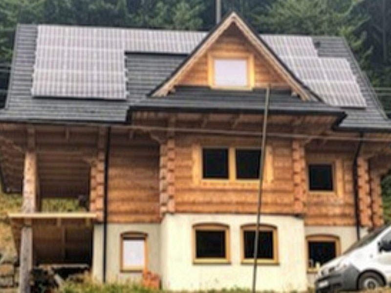 Dom wypoczynkowy w Łopusznej ogrzewany akumulacyjnymi foliami grzewczymi pod wylewką, wspierany instalacją fotowoltaiczną.