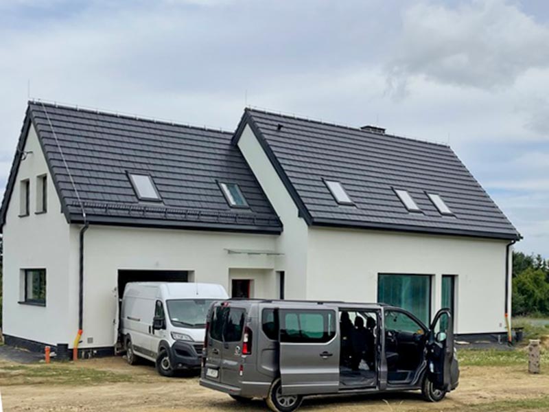 Energooszczędny dom w Tychach z nowoczesnym systemem folii grzewczych pod wylewką i instalacją PV o mocy 6,375 kW – zużycie energii zredukowane do 4600 kWh rocznie.
